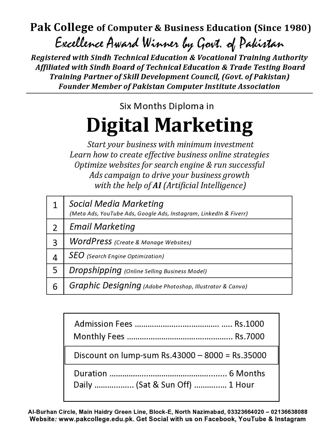 Looking to build a successful career in digital marketing? Join the best digital marketing institute in North Nazimabad, Karachi, where expert trainers guide you through practical, hands-on learning. Our courses cover everything from SEO (Search Engine Optimization), SMM (Social Media Marketing), PPC (Pay-Per-Click Advertising), Content Marketing, Email Marketing, and more. Whether you're a beginner or looking to upgrade your skills, our flexible classes and real-world projects will prepare you for the digital world. Start your journey with us and take the first step toward a bright future in digital marketing!