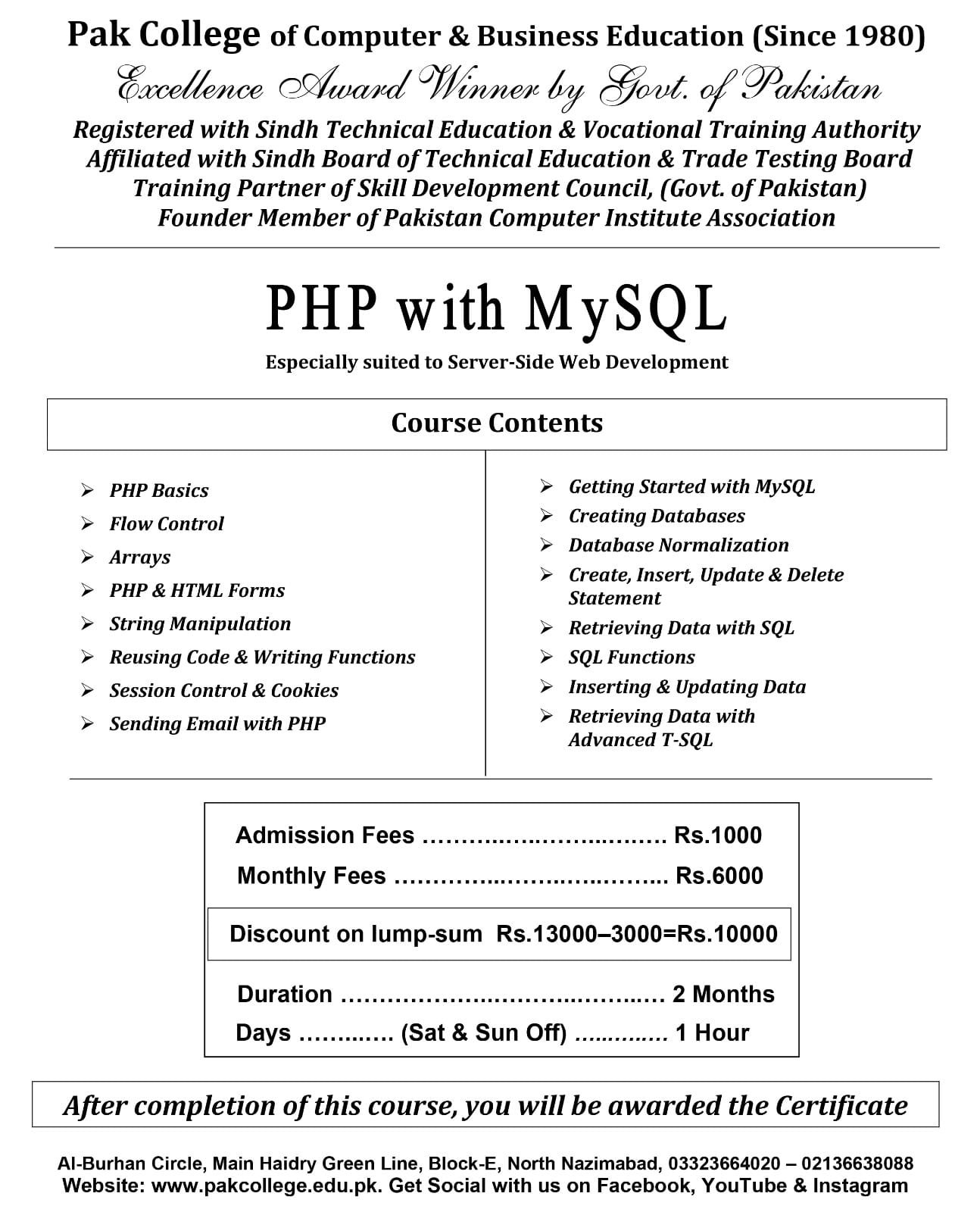 PHP with MySQL is the most popular scripting language for web development. It is free, open source and server-side (the code is executed on the server). MySQL is a Relational Database Management System (RDBMS) that uses Structured Query Language (SQL).